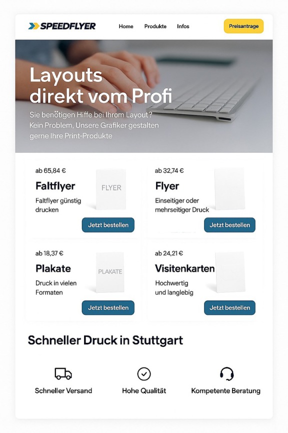 Anschließend können Sie es über uns oder bei Sonderwünschen über unsere Partnerdruckereien in bester Qualität und zu besten Preisen printen lassen.